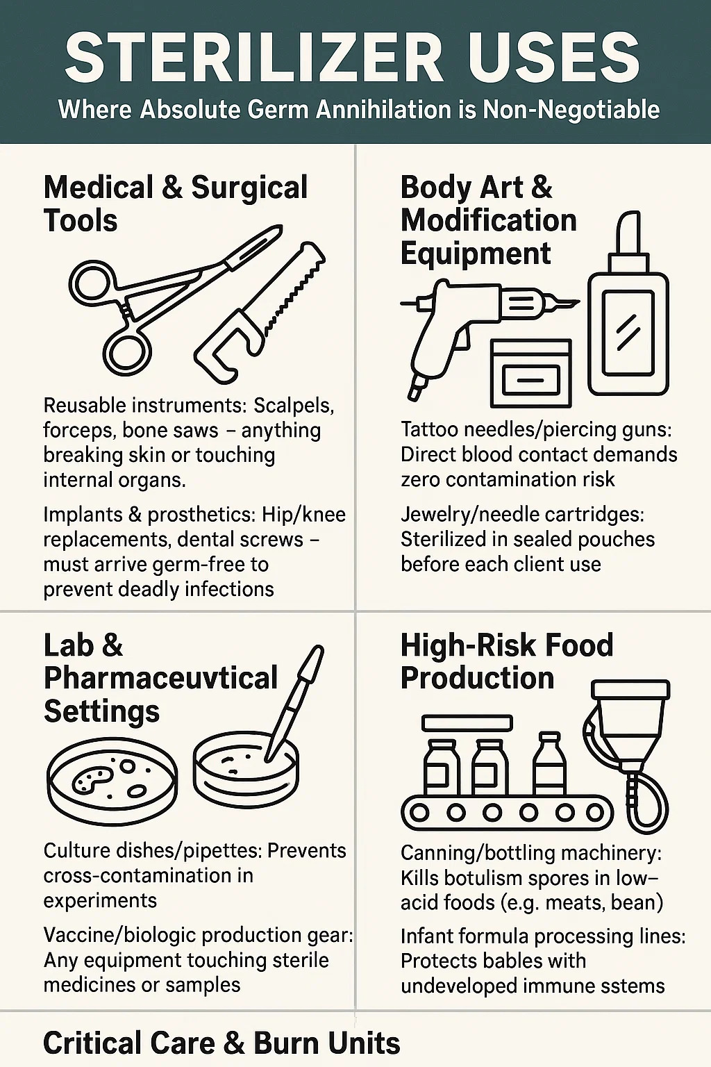 Sterilizátor Použití: kde je absolutní zničení zárodečných zárodků
