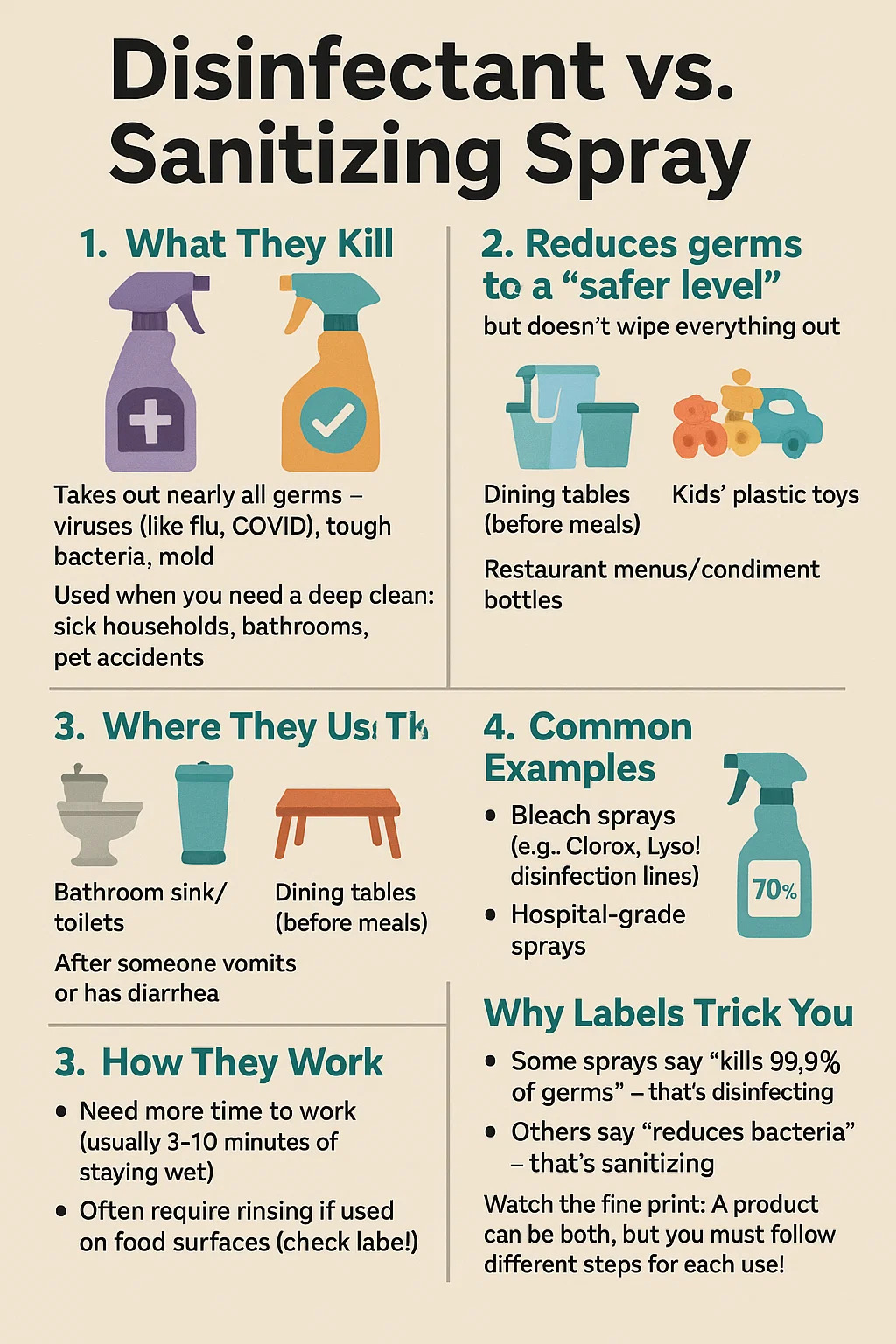 Zde je skutečný rozdíl mezi nimi dezinfekční spreje a dezinfekční spreje: